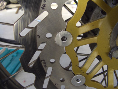随分と後回しにしていましたが気になるフロントブレーキ。 以前書いたとおり、現在所持しているEN用310ミリウエーブローターですが、回転方向が逆向きであったので、正方向を在庫していたkinさんと交換しています。 向きが逆なだけで、同じ製品です。 そしてキャリパーも同じくEN用2ポッド、こちらは純正品と思われます。 フロントブレーキ周りはこの仕様ですが、ソルフロII時代に使っていたころは投入時、非常によく止まってくれる代わりに、がくがくとした挙動が出ていました。 しかし4000km走ったあたりからその挙動はなくなり...