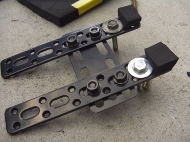 フレーム加工の続きです。とは言え、基本的に溶接技術も設備もないぼくは、せいぜい「切る」くらいしかできないので、増設する場合は何らかの工夫をしなければなりません。タンク固定部分は、GSのタンク固定箇所を延長して新たに作ることにしました。本当は溶接すれば一番良いし楽なのですが、工夫して何とかできるものなら自分でやってしまいたいです。そこでホームセンターのステーでこんなものを組んでみました。ステーはなるべく厚いものを選び、ボルトはすべてネジロック剤を使います。飛び出しているボルトはタンク固定用のもの...