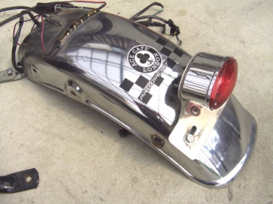 フレームの加工が出来たのでリアフェンダーから取り付けていきます。ソルフロIIのリアフェンダーAssy(笑)。装着!問題のフロントフェンダーです。純正のフェンダーはタイヤと干渉してしまい、当然そのままでは付きません。穴でも開けるか・・・そう思った時思い出しました。半年ほど前、ソルフロに取り付けようとして穴位置が合わなかったため、放置していた社外フェンダーがあることを!ケイユン SR400用ショートフェンダーダメもとでこれをあてがってみると・・・なんと!殆どぴったりじゃないですかー!!これは神の啓示だ!やっ...