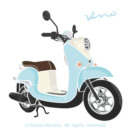 JUGEMテーマ:YAMAHA 去年描いたYAMAHAのVinoを ゆるキャン△配色にしてみた。 ドラマ版は現行型Vinoなので ほぼこのスタイルと配色みたいだ。 ベージュとかライトブルーは 近所の交差点でたまに見かけます。