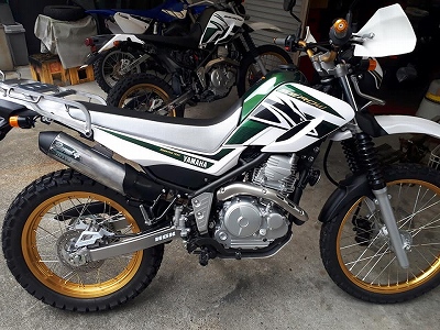 奥にある’12セローから新車のセローに乗り換えの常連さん。 あえてファイナルじゃなく’18にしました。 ファイナル出てすぐこれに決めてストックしておいた車両です。 ’12セローに付いてたパーツの移植作業。 新車に付けるにはクオリティが・・・ なのでキレイキレイしながら取り付けしました。