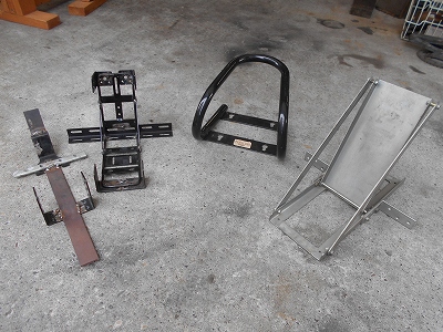 トランポにバイクを積む時にFタイヤの位置決めするヤツ。 右2個は売ってるヤツ。 ・・・っんで左2個は自作 20数年前から渓流釣りは軽パコにミニモト積んで・・・ そのころからいろいろ作ってた。 最近作った2作品。 ちなみに・・・ PASのFキャリア(笑