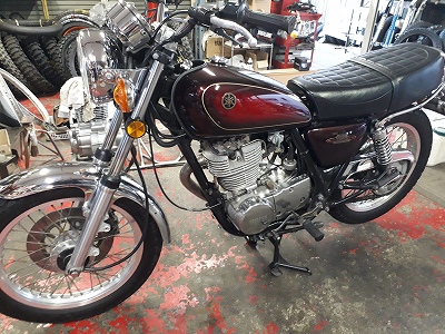 心臓移植・・・エンジン載せ替えですけどね(^^) 2003年モデル SR400 25周年500台限定車。 ワンオーナー車。 もともとカスタムしまくっていた車両なので走行距離は不明。 たぶん・・・6〜7万キロかな? 25周年限定車はSR史上一番の限定車ではないでしょうか? 機械じゃなく職人の手塗りのタンクとか・・・ バフ掛けが通常のSRと違ったり、 メッキは通常より分厚いとか・・・ ちなみにこの方・・・40周年のSRも所有してます(^^) 今まで3台のSRを買って頂いてますが、(SR以外もあり...