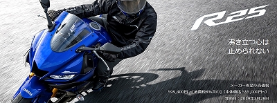 マイナーチェンジした’19のR25・・・受注開始です! 先日・・とある場所で実物を拝見させて頂きました。 ネット画像で’19のR3かな?を見た時には、 あれ?っ・・顔は今までの方が好きだなぁ〜って思いました。 しかし実物見たら・・・ぜんぜんヨカッタです。 R1やR6っぽさが伝わって来ます。 メーター廻りやフロントの足廻りは誰でも解るとして・・・ 実物を見ないと伝わらない事があるので、 ’19が入荷したら是非見にご来店ください。 カタログは入荷済み! しかも購入キャン...