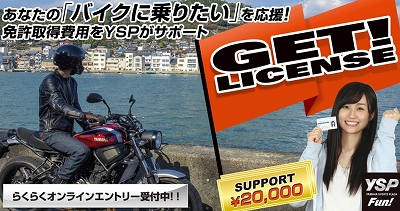 2018年も引き続きやってます(^^) https://www.ysp-members.com/support/getLicense/ 普通 ・ 大型二輪免許取得前に、 店頭またはネットにてエントリーして頂き、 免許取得後にYSP磐田にて、 ヤマハ126cc以上(国内モデル ・ 海外向けモデル)の・・・ 新車ご購入頂いた方に・・・ 免許取得費用の一部として、20000円キャッシュバック! それと・・・ココ↓大事(^^) 当店にある遠鉄自動車学校の入校申込み書で入校された方は、 さらに5000円キャッシュバック! トータル25000円(^^) &nb...