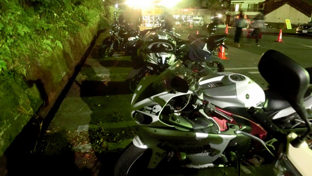 続き。 小原町から更に南下して、お約束の場所=お馴染み、香嵐渓でござい。 とか簡単に書いてますが、付近の渋滞がもう、ひどいのなんの。 バイクじゃなきゃとてもじゃないけど、来る気にはなりませんね。 あのー・・・平日ですよ? しかも夜ですよ? なんだか年々観光客が増えてませんかね・・・? そんなこんなですが、バイクなので何事もなく到着。 時間もぴったり、予定通り! ライトアップに合わせて家を出た甲斐がありました。 山が!!山が燃えている!? こっちも年々スケールアップしてる気が...