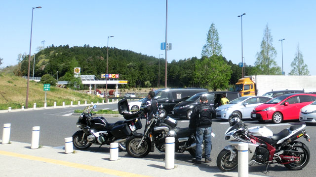 と、言うわけでやってきました。 YZF-R1で参加のGN倶楽部ツーリングです(笑)!! 一応断っておきますが今回の目的地は清水・・・名古屋から参加する場合、皆さん高速道路を使うのでそもそもGNでは参加不可能なのです。 つまり全員中型以上。 気兼ねなく参加出来ますね(うっとり)。 この日、東名高速から見る山々はかなりガスってました。 これはこれで幻想的。 浜名湖SAに到着。 もちろん、全員中型以上のバイクです。 てゆーかスズキのバイクそのものが皆無です。 なんてこったい(笑)。 ※注:GN倶楽部...