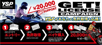免許取得後ヤマハの新車を買うと2万円キャッシュバック! 免許取得前に必ずエントリーしてくださいね。
