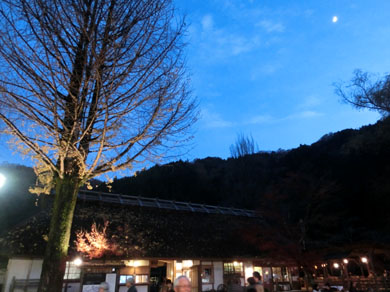 続き。 そうこうしているうちに、月が登り、ぼくが辿り着いたのはたくさんの飲食店が居を構える辺り。 平日のこんな時間でもお店の前には列が。 予定ではたこ焼き以外買うつもりはなかったのですが、「鮎のおにぎり」の看板につい、並んでしまいました(笑)。 この世に魚は数あれど、鮎以上の魚はそうそうないと思っています。 それくらい鮎が好きです。 で、買ったおにぎりはこちらなのですが・・・ たしかに香りは鮎そのもの、しかし身は殆ど入っておらず・・・。 魚粉とかそんなレベルでした。 残念。 ...