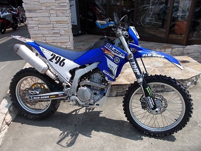 店長所有のWR250R。 JNCCにこれで出場しました。 2014.6.8JNCC鈴蘭大会WR250Rクラス・・・優勝しました(^^) 過去最高に重たいバイクでレースに出ました。 サイレンサー変更など軽量化しましたが、 まだまだレーサーより重たい(汗 重たいからジャップでハネ難いし・・・ ドッシリとトラクション掛けれる! Rスプロケ変更で加速も良くなり・・・ 下手なモトクロッサーと同等には走れます。 やっぱ戦闘力高い!!・・・しかもトレール車は壊れない! ホントいいバイクです(^^)