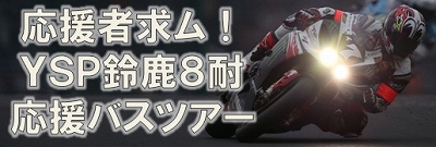 今年もYSP8耐応援バスツアーやりますよ! バス代無料のお得なYSPチケット発売中!! 急で申し訳ありませんが、 締切が6月22日(日)です。 もうしばらく締切延長します。 11日(金)で締切決定致しました。 是非この機会に!! ありがとうございました完売です! 参照 http://www.suzukacircuit.jp/8tai/