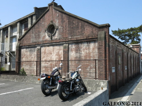 最近ベスパからSRに乗り換えた友達を誘って、貝塚市の寺田紡績へ。バイクを停めさせてもらい、ぐるっと歩いてみました。