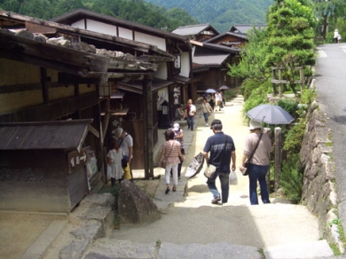 では、お楽しみの馬篭宿に潜入です。こういった坂道に古い建物がひしめきあっています。奈良井宿と決定的に違うのは、この急勾配の石畳で、これが良い景色を作り出しているんです。何と言うか、そう、立体的なんですよね。奈良井宿にもうひとつ面を加えた感じ。上手く言えませんが、とても面白い景色を作り出しています。山と青い空、白い石畳、そして情緒ある建物。すべてがベストマッチ!それと、ぼくがその街を好きになる要素のひとつとして、水のせせらぎがあります。この街にも側溝を澄んだ水が流れ、そのせせらぎを奏でていまし...