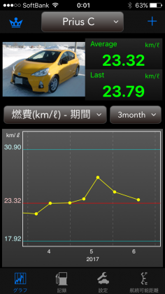 JUGEMテーマ:ハイブリッド車 こんにちは! 昨日はノート e-POWERの4月〜6月のリアルな期間燃費、生涯燃費についてのレポートでしたが、今日はその Prius C 編です! 4/7 650km 29.81L:21.80lm/l 4/17 687km 29.48L:23.30km/l 5/1 686km 29.37L:23.35km/l 5/11 740km 30.94L:23.91km/l 5/21 737km 27.33L:26.96km/l 6/2 778km 31.24L:24.90km/l 6/19 751km ...