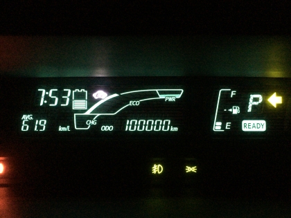 JUGEMテーマ:ハイブリッド車 こんにちは! 2017年7月26日、会社から自宅に帰る途中でその時はやってきました… 祝!100,000km突破! 2012年12月29日に納車されてから4年7ヶ月での突破ということは、100,000km÷55ヶ月≒1,818km/月となり、2回目の車検を迎える今年の12月頃には109,000km程度まで距離が伸びているであろう計算になります。これからの5ヶ月間は保証がない状態での稼働になるため、より一層大事に扱わなければいけません。  ...
