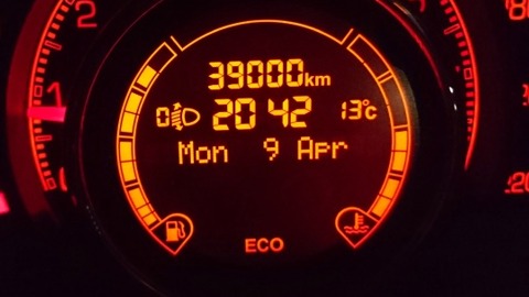 JUGEMテーマ:FIAT(フィアット) だから何の?って言われそうですが、39,000キロゲットです。 38,000キロの時は首都高上だったので、ゲット出来ませんでしたけど、今回は近所の市街地走行時気が付いたら、39,000キロ! 直ぐに端に寄せてゲット 次回は記念すべき40,000キロはゲット出来るだろうか?