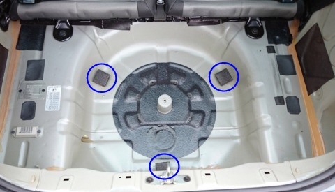 JUGEMテーマ:FIAT(フィアット) ロードノイズ対策をしてきて、逆にマイナスになってしまったことが無いか、思い返してみました。 一つ気になっていたのが、テンパータイヤの取り付けです。 標準では3か所のパッドの上にテンパーのタイヤが乗っかり、ネジで締め付けられます。 この3か所のパッドを介してスペアタイヤパンの鋼板を押さえつけて、振動を抑えていたのではないか?と推測しました。 ところが、ニードルフェルトを敷き詰めた為に、赤い部分にテ...