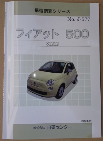 JUGEMテーマ:FIAT(フィアット) みんカラの投稿を見ていて、見つけました。 株式会社 自研センター 発行 構造調査シリーズ フィアット 500 64ページ 元々、板金修理の見積り用の資料として発行されているみたいです。 サービスマニュアルではないので、物足りない部分もありますが、写真も沢山あり見ているだけで、楽しいです。 趣味のクルマイジリには、余り役に立ちませんが、持っていても邪魔になることは無いです! ちなみに私は↓から購入しました。 http://tebra.jp/?pid...