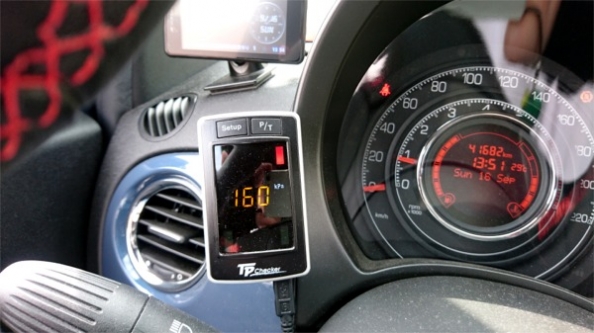 JUGEMテーマ:FIAT(フィアット) 我がFIAT500にはオレンジ・ジャパンのTP Checker P411B と言う TPMS(タイヤプレッシャーモニタリングシステム)が取り付けられています。 タイヤの空気圧とタイヤ内の空気の温度がリアルタイムでディスプレイに表示されます。 P411Bはかなり前のモデルなので、表示は4輪同時ではなく、1輪づつ空気圧と温度が順番に表示されます。 15年8月の画像ですが、左リアの空気圧が222Kpと表示されています。 次はタイヤ内の温度が27度と表示されま...