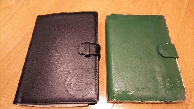 前から気になっていたものの。。。 まぁ、ね、LOTUSクオリティだから、ね。。。 仕方ないよね。。。 と、あきらめていた、ボロボロだったクラ吉の車検証入れ。。。 伯爵が、オーセンさんに行ったときに買ってきてくれたヾ(o´∀`o)ノワァーィ♪ 左の黒いNew〜♪車検証入れ! ¥5,000くらいなり。 もう、ボロボロになりそうにない車検証入れ♪ 合皮だけど、十分です! いままでの、右のは。。。 もう、中の厚紙?が出てきて、ぽろ...