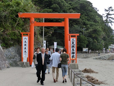【伊勢参拝巡りの旅5】 【二見興玉神社】 腹も満たされパールロードを戻り二見の夫婦岩へ。 今回の旅は1日参拝しまくりだがね。 あれが夫婦岩かぁ。 思ったより近い場所にあるんだなぁ。 (゜▽゜) 【夫婦岩】 古来より日の出遙拝所として知られてきました。沖合約700m先には猿田彦大神縁りの興玉神石(霊石)が鎮まり、そこは降臨する神の依り代であり、常世の国から神が寄りつく聖なる処と言われてきました。夫婦岩はこの興玉神石と日の出を遙拝する鳥居とみなされています。男岩は高さ9m、女岩は高さ4mで...
