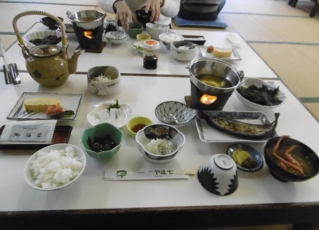 【年末年始!答志島で初日の出】 第9回 やま七の夕食 さぁ♪お楽しみの夕食タイム。 最初は3種の前菜と蛸の塩辛に もずく酢と若布の胡麻味噌あえ。 最初から色んな味を楽しめて良いねぇ。 (o゚∀゚o) お!いきなり豪勢だねぇ。 カレイを丸一匹使った贅沢な活け作り。 さっぱりとして繊細な味だったわ。 当日捕れたのお刺身は美味いのぉ♪ どれも新鮮で最高だがや。 地魚の煮付けも味が浸み込んで良い! やっぱ煮付けは美味しいなぁ...
