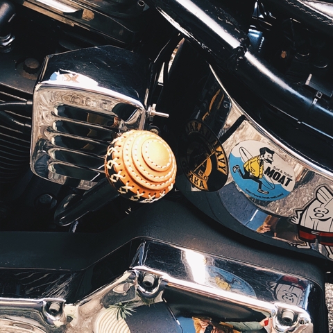 左右対称のデザインになるよう、特注で製作したガスキャップリングです。 右側が通常の形で、左側が反転させたモデル。 ハーレーの分割タンクに装着されるとの事で、そのタンクの給油口にあわせて穴の直径も7mmほど小さくしております。通常のモデルは直径約60mmですが、今回は53mmでオーダー頂きました。奥に写っているスカーレットが通常のサイズなので、直径を小さくすることでより牛革部分が増えているのがわかると思います。 こんな感じで何かとご相談いただけましたら、その都度対応...