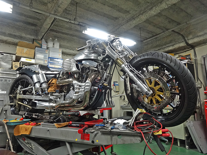 JUGEMテーマ:Harley-Davidson あっちをやりながら、こっちをやりながら バランスを見て計画実効、バランスを見て計画変更...。 想像できるもの、想像できないもの 生き物のようにバランスがその都度変わってゆく。 その感じがスゴく好き。 こういう途中段階のアップを載せると河北シャチョーは嫌がったりする(笑)。 なぜなら老眼で溶接のビードが綺麗に送れなくなったからと言う...