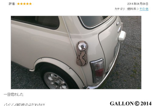 クラシックミニ用のよだれかけ、蛇革モデルのレビューを発見しました。ホワイトボディのローバーミニにパイソンのよだれかけを装着されてます。⇒ GALLONよだれかけレビュー レザーショップが提案するよだれかけと言う事で、素材にも拘っており、最高級のダイヤモンドパイソン(錦蛇)革を使用してます。もちろんプリントではなく本物の柄で、革の厚さや鱗の質感など、安価な蛇革とは比べ物にならない存在感があります。同じパターンは存在しない一点もののよだれかけです。 GALLON &nbs...