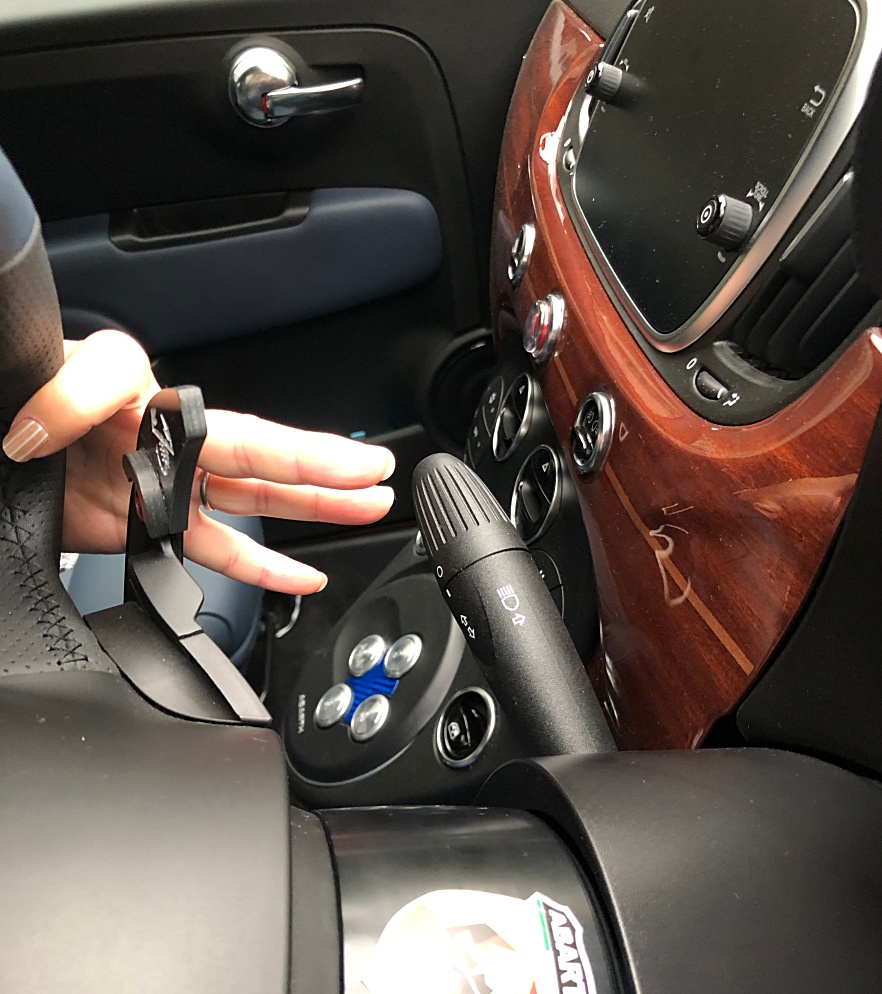 RivaleにSteering extenderを入れて、ステアリングが近くなって運転しやすくなったのだけど、ウィンカーが遠くなってしまったのは既報の通り。 この見事なまでに届かない様子を見たKさんが、ご自身と同じエクステンションを作ってくださるという!KさんのABARTH595はマニュアルなので、パドルシフトのついているRivaleに取り付けるにはちょっと加工が必要とのこと。GW始めの頃、実車で採寸、仮当てをして、気長にお願いします、とお願いしたのだった。 が、あまり待つ必要がなかった! ...