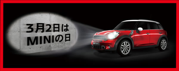 JUGEMテーマ:MINI 「Dear MINI Fan, THE NEW MINI特別メールマガジンにご登録いただき、 ありがとうございます! 近日中に、THE NEW MINI特別メールマガジンをお送りします。 どうぞお楽しみに!」 この内容でメールが来ていました。 恐らく3/2前後に合わせて何か来そうな予感ですね…