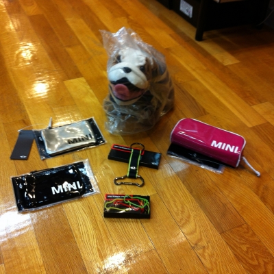 おしゃれな小物からアパレルまで充実のBMWミニの純正アクセサリー。 この度、少量です入荷しました! 定番のブルドッグ君のぬいぐるみやエナメルポーチ カナビラの部分がミニの形をしたキーリングや・・・ 広げるとミニの形の「輪ゴム」など・・・ かわいいグッズがいっぱいです! その他のアクセサリー用品もカタログを見てお取寄せも可能ですので 気になる方はご相談を! □MINI SQUARE(ミニスクエア) 〒561-0817 大阪府豊中市浜2丁目20-52 TEL:06-6333-3418 HP:www.mini-squ...