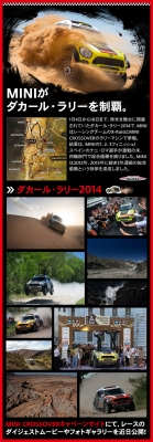 JUGEMテーマ:MINI MINIがダカール・ラリー3制覇 MINI CROSSOVER ってMINIからのメールマガジンで届きました… 個人的に思うのですがMINIでラリーって シティーハンター思い出すのは私だけでしょうか? 飛び跳ねるMINI あっちのMINIはローバーMINIですけど。 よくやるなぁ… ラリーって大変そう。