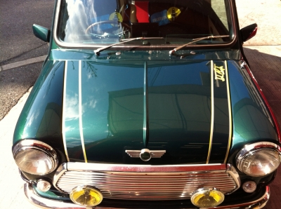 お客様のご要望で制作させて頂いたボンネットストライプ?!です! なぜ「?!」がついているかと言いますと・・・ 外側のラインだけなんです! 同色系のラインに縁取りを入れる方法はたまにありますが 完全に外のラインだけは珍しいかも・・・です! 写真では判りにくいかもしれませんが、実際見るとラインに見えるんです! ライン上?に貼った「ジョン・クーパー」デカールがさらに雰囲気を増してます! お客様にご依頼頂いた通り制作したんですが、こんな方法もありかも・・・ 取寄せた材料で・・・ ...
