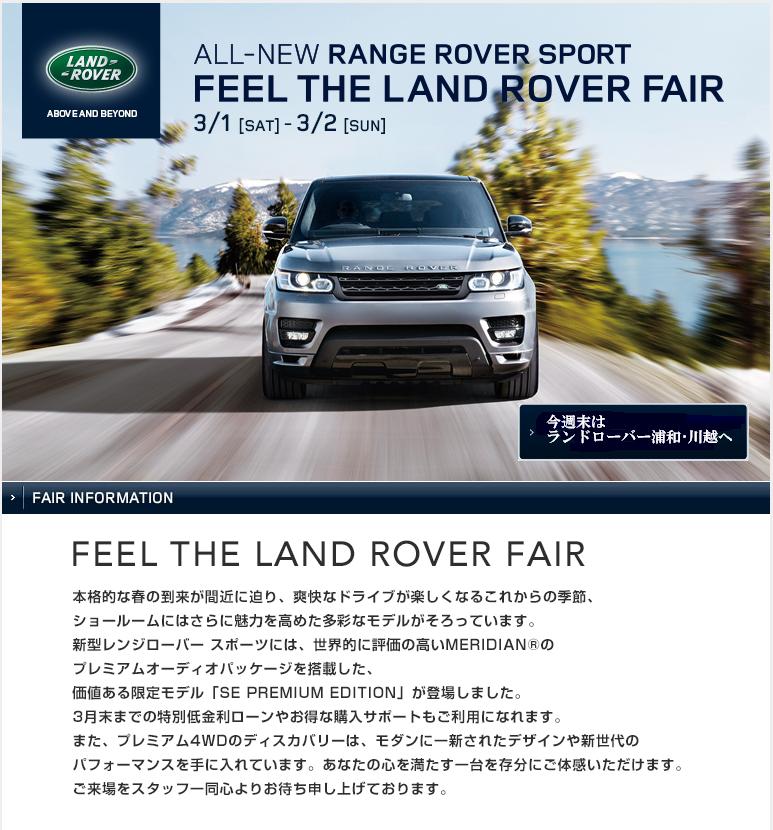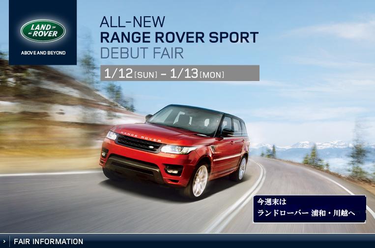 JUGEMテーマ:LAND ROVER本年もジャガーランドローバー 浦和・川越を宜しくお願いいたします今年1発目フェアーのご案内です。ALL NEW RANGE ROVER SPORT DEBUT FAIR2014年1月12日(土)〜1月13日(日)
