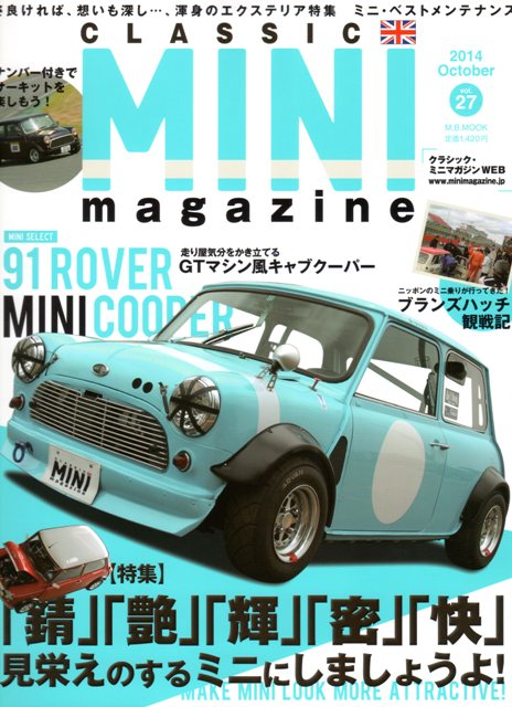 JUGEMテーマ:クラシックMINI クラシックミニマガジンvol.27が発売になりましたね。 今号の特集記事は「渾身のエクステリア」 ボディーケアから気になる錆びの発生箇所、 レストアに役立つペインティング、 皆さん大好きメッキパーツの作り方まで、 MINIをMINIらしく見せる特集記事。 必読です。 そして今回も頑張ってますよ田代塾長。 ミニベストメンテナンスのページはインテリアクリーニング。 そこまでやるのか!!的な、流石はゴーリー田代塾長はやる事が徹底してますw さて、オイラが連載任されている「ワ...