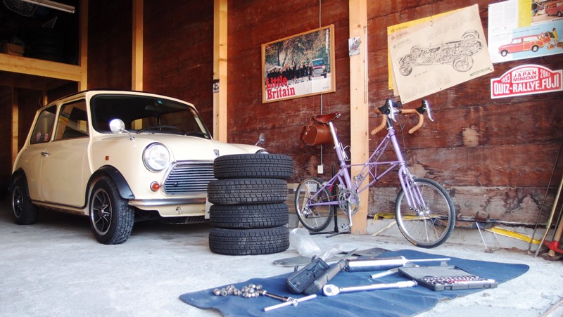 JUGEMテーマ:クラシックMINI けーたー地方は週明けから雪予報。 今日は朝からタイヤ交換に勤しむ近所のお父さん達の姿がチラホラ。 なのでオイラのMINIも冬支度。 ジャッキアップして夏タイヤの取り外し開始。 オイラ、純正ジャッキしか持っていない。 だから、何時もの如く前後両輪持ち上げての作業。 一見不安全に見えるが、案外安定感が有り作業はやり易い。 さて、昨シーズンを過ごしたスタッドレスタイヤ。 フロントに履かせていたタイヤは結構磨り減っている。 右が前輪に履かせていたタイヤで...