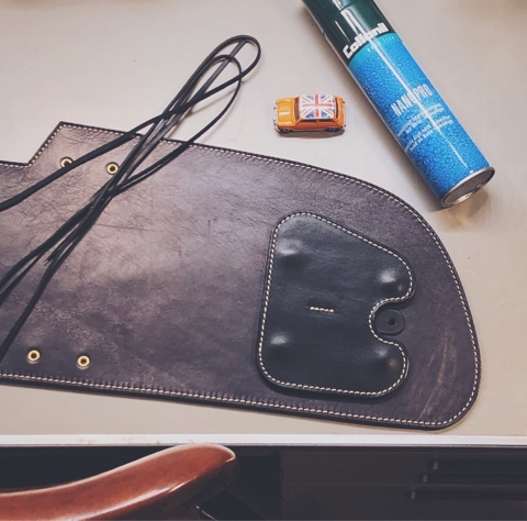 お任せで製作させていただいた、小さいタンクエプロン。装着例を撮らせてもらいました。 近いうちに、通販サイトからもオーダーできるようにする予定です。