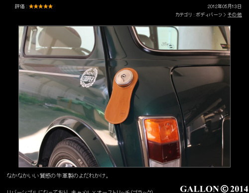 随分前の記事ですが、牛革製よだれかけのレビューです。 てっきりブログに載せたと思っていたんですが、過去の記事を探しても見当たらず、載せ忘れているようです。純正色のミニなので、牛革のカラーを選ぶ参考になると思います。 クラシックミニの純正色・ブリティッシュグリーン。このボディカラーにはキャメルが非常に似合いますね。こんな感じで、皆さんもガロンアイテムご購入の際は、ブログやTwitter、instagram、Facebookなどにどんどん投稿して下さい。⇒ GALLONガスキャップエプロンレビュー あと今後の予定で...