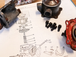 流体力学を利用したパーツはオーバーホールしても完調を取り戻すコトが難しいというのは MGB GTV8 やヒーレースプライトのファクトリーキャブレターをフルOHして勉強になりました。 各機関が複合して不調の原因を作り出している場合もおおいのでビジネスとして直す側もポンつけリプロダクトのパーツ付けて×××はうが時間あたりの×××が...おっと脱線しました。 BAU5077 FUEL PUMP REPAIR KIT S&M 58-63 国内定価税抜 ¥15000 スープアップやコンバージョンするのもありですが、オリジナルは紛失しないように。。リプ...
