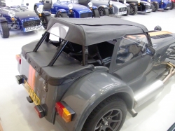 JUGEMテーマ:英国車 「オープンエアを感じたい!でも強い日差しがちょっと...」と思っている方に是非オススメしたいアイテム、純正オプションのハーフフード(幌)、通称「ビキニトップ」です。 運転席、助手席側がジップで開閉できるタイプなので幌を張った状態での乗り降りが容易にできます。画像の様に純正サイドスクリーンの併用も可能です。 カーボンサイドスクリーンと同じくオプションパーツのウィンドディフレクターとの併用画像はこちらです。(取付け画像を提供下さいました、ケーターハムディーラー様、...