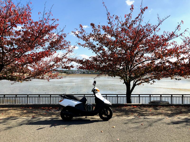 JUGEMテーマ:バイクのある生活。 Tシャツにジャンパー羽織れば、まだ走れる異常な気候ですな。 ある意味定期便! 引き取りがてら久米田池散歩でした。 桜紅葉してるね🌸 今日はでっかい望遠レンズ背負ったキャメラマン多かったけど、何かあったのかなあ('ω') コウノトリか? 外国チックなこの雰囲気が最近のお気に入り。 いつもの鴨達に挨拶して仕事突入〜。