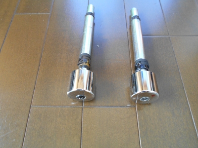 僕(おやじ)のクロスカブです 去年の話ですが TAKEGAWAのハンドルバー、ハンドルガード、などなど 交換取り付けと難儀したお話しを少々 これが純正のハンドルに入っていた「ウェイト」?ですかね バーエンドのこのネジがめっちゃ固くて緩みません それでウェイトごと抜きました(このウェイトとバーエンドは捨てます) この小さな金具でウェイトが抜けないようにロックされてます ハンドルのこの穴(下...