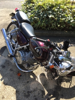 ブログに書こうかどうしようか迷ったのですが いつも見てくれはる皆さまにご報告ということで。 実は… 10月16日の日曜日、 ツーリングの集合場所に行くまでに 事故に遭いました。 国道で右折で店に入ろうとする 軽自動車の左側面に衝突。 直線でお互いの前方に車両のない状況やったけど 相手は直進してくる私に 一切気づいてなかったそう。 私は救急車で運ばれたものの、 骨折もなく、頭も打ってへんし、 全身打撲のみ。 今は右手首が思うように動かず ちょっと不便してますが大丈夫です。 ただSTのフロント...