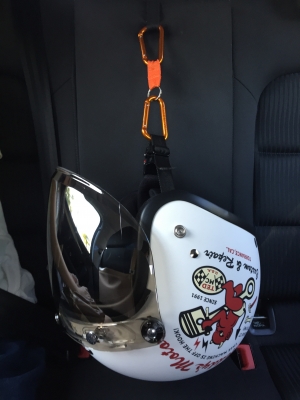 JUGEMテーマ:バイクのある生活。 いよいよ中型バイクの免許を取りに行きます。 人に習うのって、もう何年ぶり! なので、ちゃんと低姿勢にがんばります。 まずはあの重いのを慣れないとね。 絶対起こせないと思うけど、筋トレもしようかな。 44にもなって、大丈夫か〜と言われながらですが 意外に運動神経良いんですよ。 クルマの後部座席に置いていたらゴロンゴロン転がるので、 100均でカラビナ買って設置。 なかなか良い感じです。 ヘルメットの下に、何かクッションが欲しいところです。 良いの無いか...