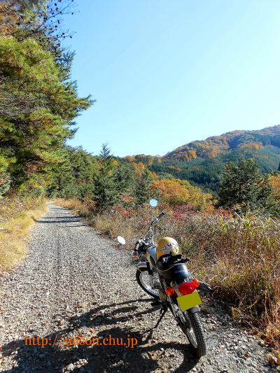 JUGEMテーマ:バイクのある生活。 ※11/23(日) 14:00〜14:30頃の開店となります。 本当は一日、PC作業に没頭しようとしていた昨日の事。いや、久しぶりにバイクに乗ろう! と思い立ち、チェックはしてたけど入った事のない林道へと、色々とおっぽり出して向かってしまいました。 ここから先はどうなっているのか。。。わくわくしながら進んでいくと、素敵な景色との出会いがたくさん。暖かい陽射したっぷり、澄みきった空と紅葉した山。ずっとにやにやしながら走ってましたよ(^^) 道の終わりは大きな岩が塞いでいて、そ...