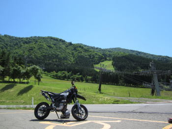 JUGEMテーマ:バイクのある生活。 気まぐれブログ始めます。 ホイールとタイヤ変えたのに 雨、雨・・・ 梅雨だから、しょうがないけど・・・ で、梅雨の晴れ間に タイヤのカワ剥きがてら、出撃 シーズンオフのスキー場に到着 当たり前だけど、誰もいない・・・ 走った感想は タイヤ太くしたけど、 ノーマルよりは倒し込みイイ感じ タイヤの形って、やっぱり重要 でも太くしなかったら、もっとイイね・・・ 見た目の感想は ここのホイール...