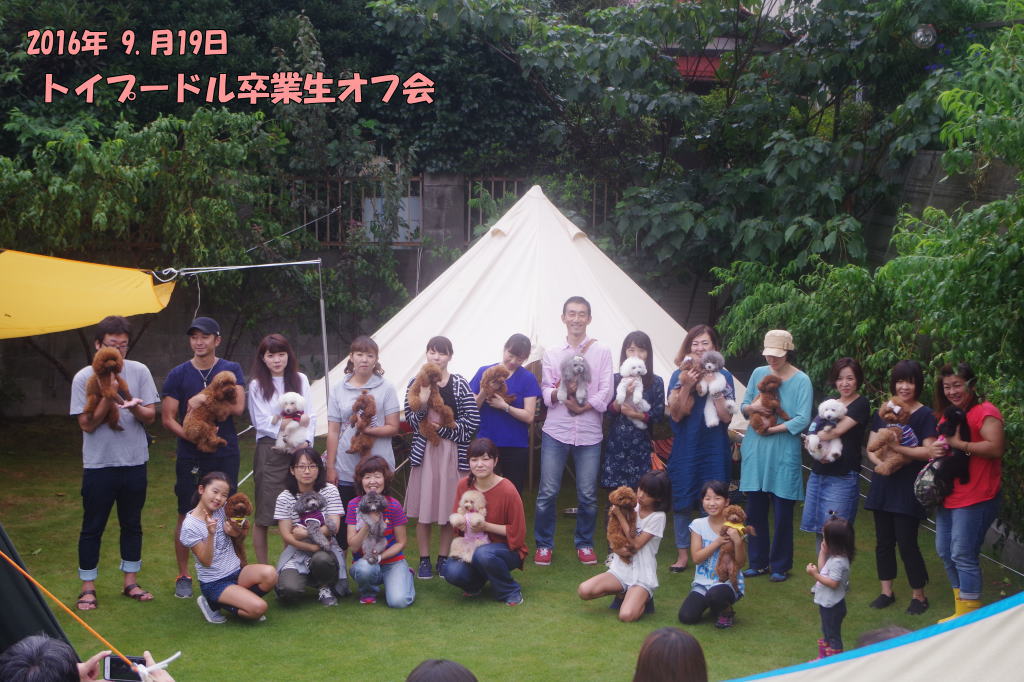 JUGEMテーマ:オフ会 ■■パピーガーデン東京ハウスのブログです■■ ホームページ:http://puppy-noa.crap.jp/ ブログに掲載している子犬たちの最新情報は、ホームページにてご確認ください。 ********************************************* 2016年 9月 19日(月) トイプードル 卒業生オフ会 無事に終了致しました! 埼玉ハウスのドッグランで開催したオフ会。 当日は台風の影響であいにくの雨模様。 どう...