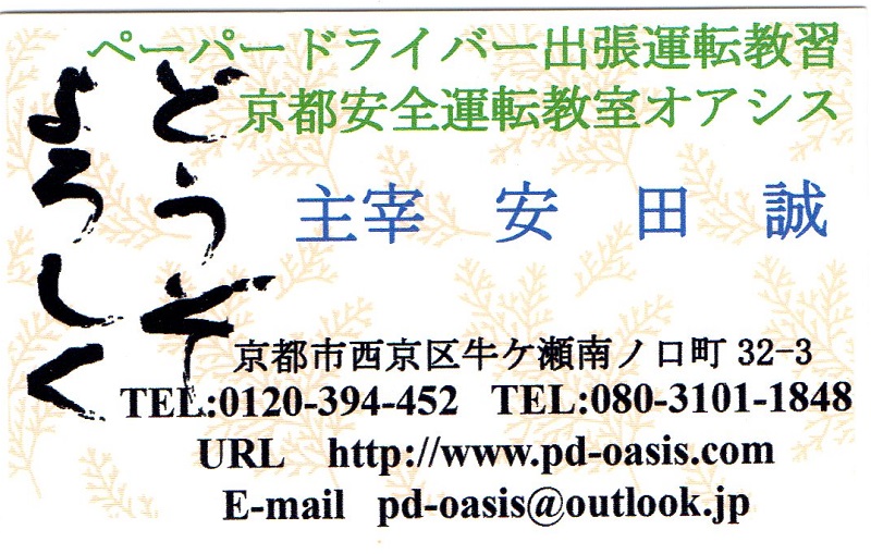 JUGEMテーマ:ペーパードライバー出張運転練習 お知らせ/ 年末&年始の出張運転練習の 申込みについて ペーパードライバー出張運転教習 京都安全運転教室オアシス TEL 0120-394-452 075-394-4505 &n...