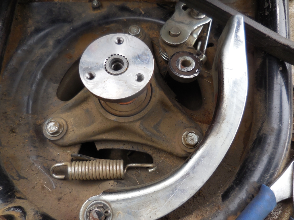 JUGEMテーマ:原付バイクのメンテナンス 草刈り機「UM2160」 その2 前回で怪しい(いや故意に曲げて壊された)ローラー部品ですが、よく見ると回転クラッチを解放した時にベルトを押さえて回転を止めてくれるブレーキになる大きな曲がって見える部品の下に潜り込んでしまってました。 本来は削れたローラーが回転時にこのブレーキを外側に押し付けてVベルトに触らないようにする役目があるみたいです。 ですから今までVベルトはブレーキの掛かったままぷーりーの駆動力...